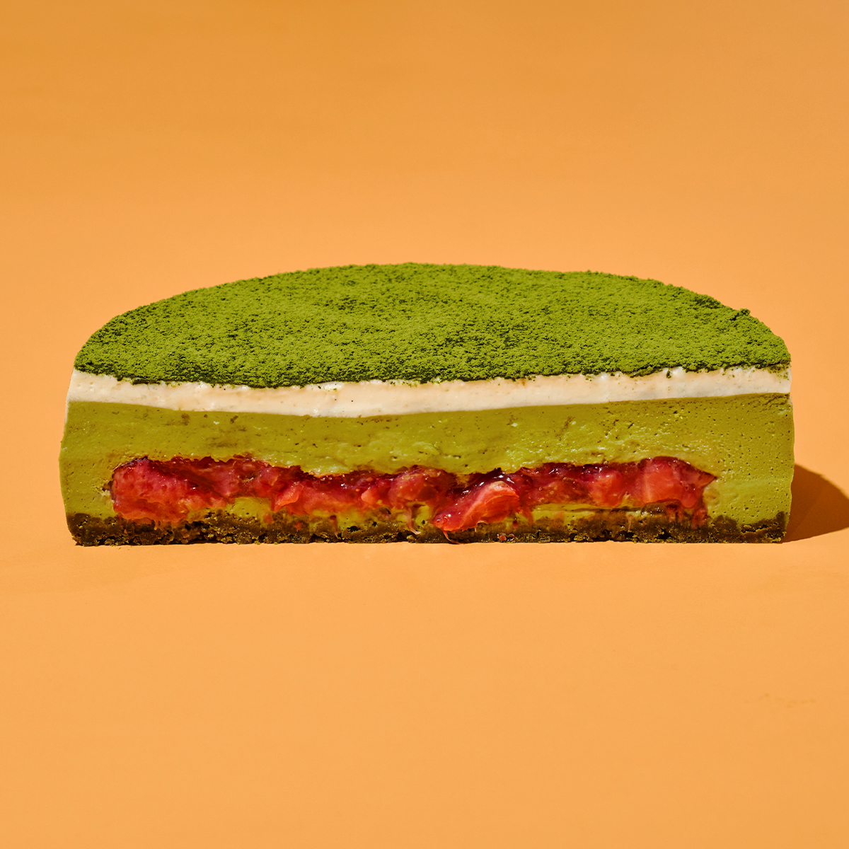 A rich and creamy matcha cheesecake with a refreshing strawberry filling, topped with smooth mascarpone cream. Layered and elegant — this fan-favorite flavor pairing gets its own cheesecake interpretation.